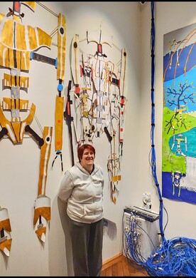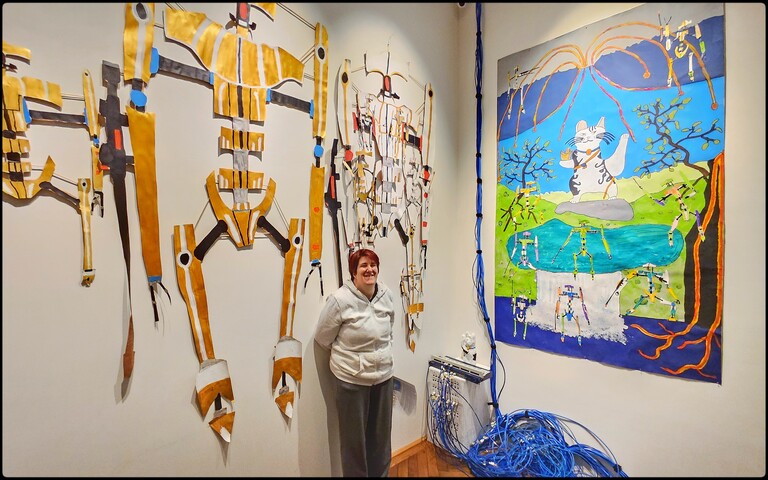 Barbara Plak begeistert mit ihrer einzigartigen Kunst. Im bildBalance Atelier Maria Ponsee (NÖ) entstehen großformatige Zeichnungen von Robotern und Metalldamen sowie Installationen aus Netzwerkkabeln und selbstgebauten Karton-Servern. Ihr Markenzeichen? Kunst, die bewusst schief, aber voller Leidenschaft ist.